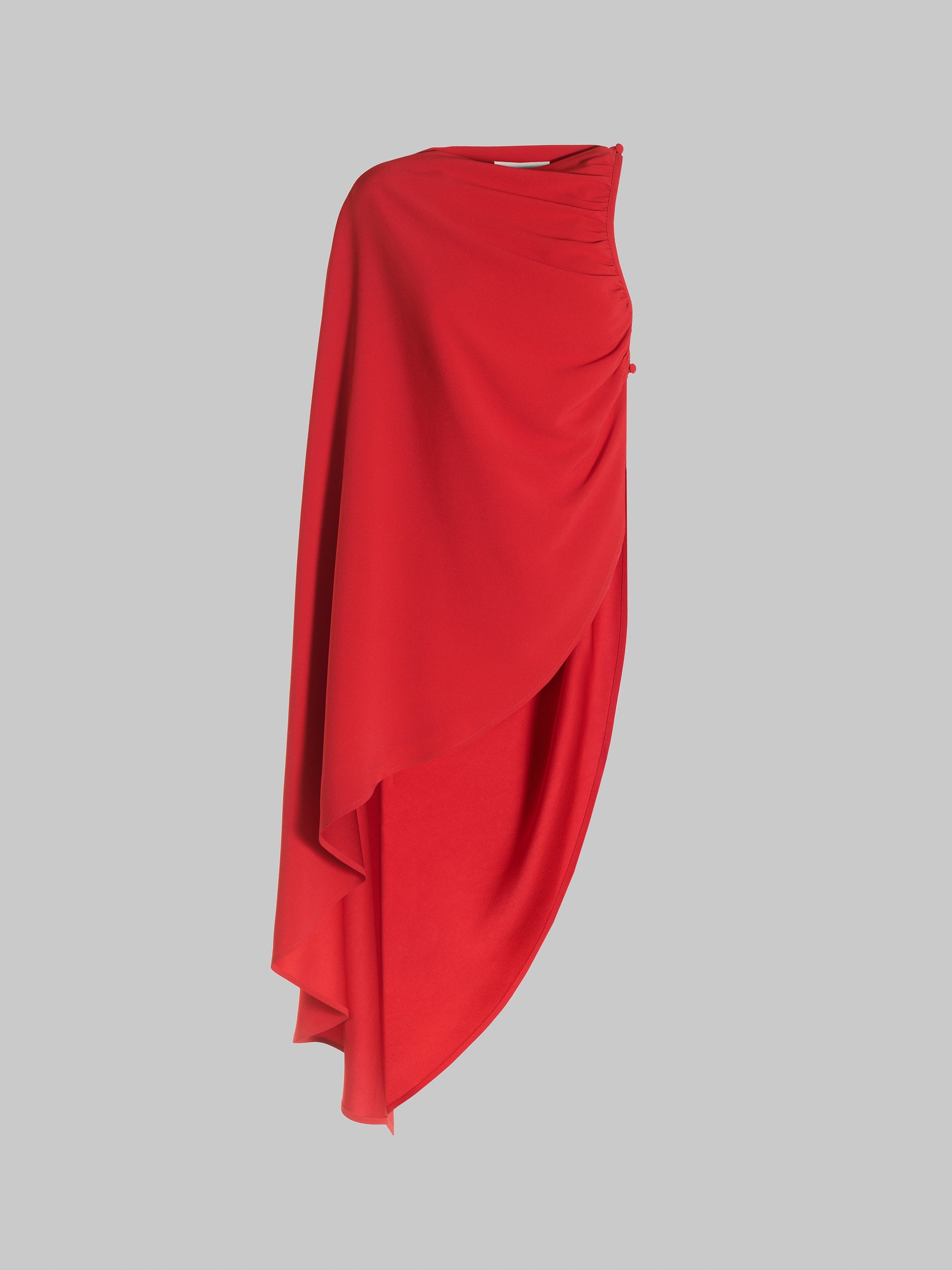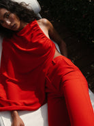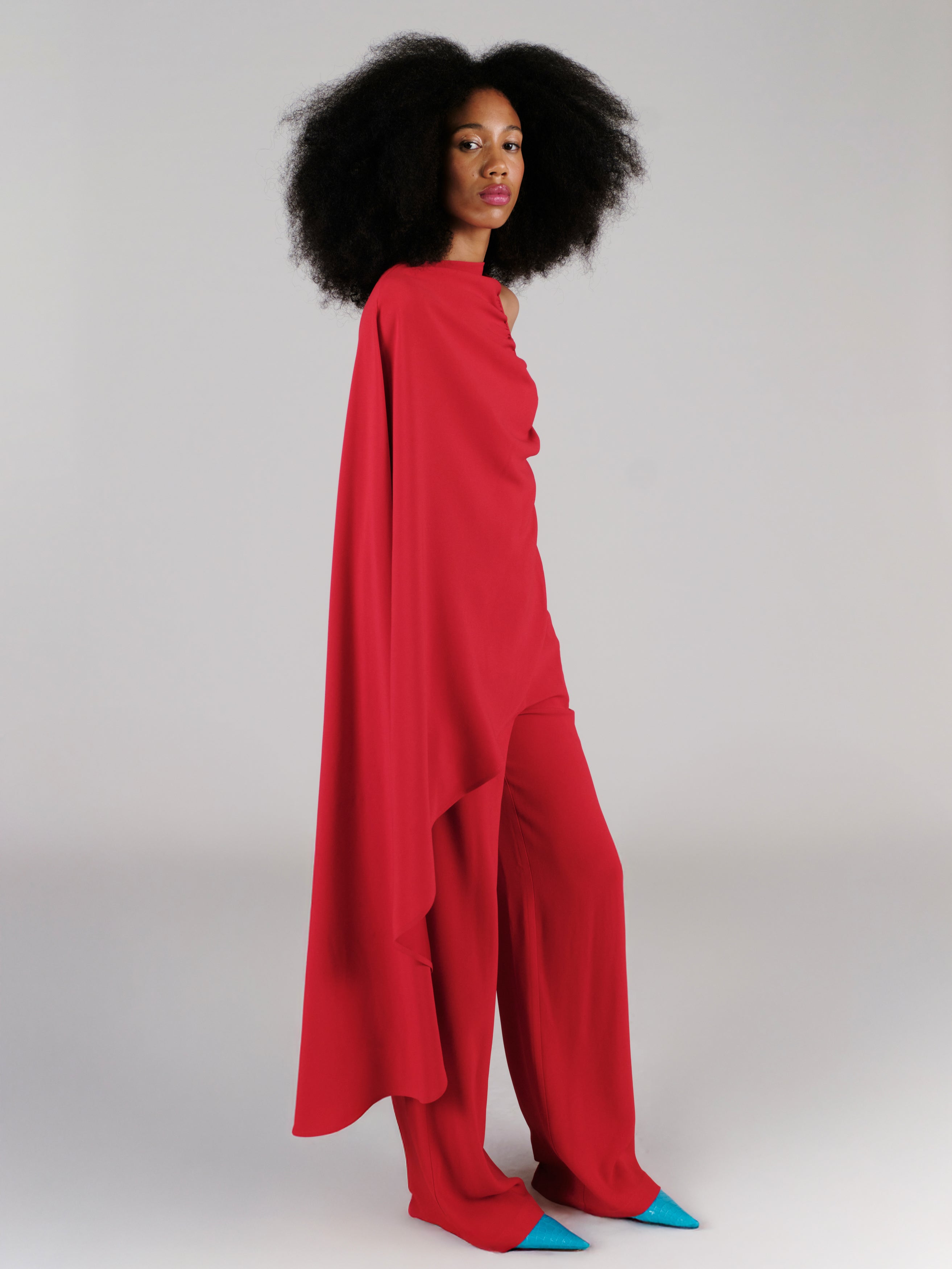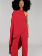 Discover the Bradley Top - a one shoulder cady cape that exudes sophistication and elegance.